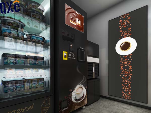 Scan QR enter store, take coffee from Coffeemaker, there are different taste you can pick. This Coffeemaker is a vendor, customer need to pay by MobilePay then pick coffee. There are other snacks customer can pick before he leave the store, like chocolate. Then customer can self check on checkout by MobilePay. After payment, put commodity on table for deactive, there is a receipt will be printed by this checkout. Without alarm after deactivate, customer leave from the exit.